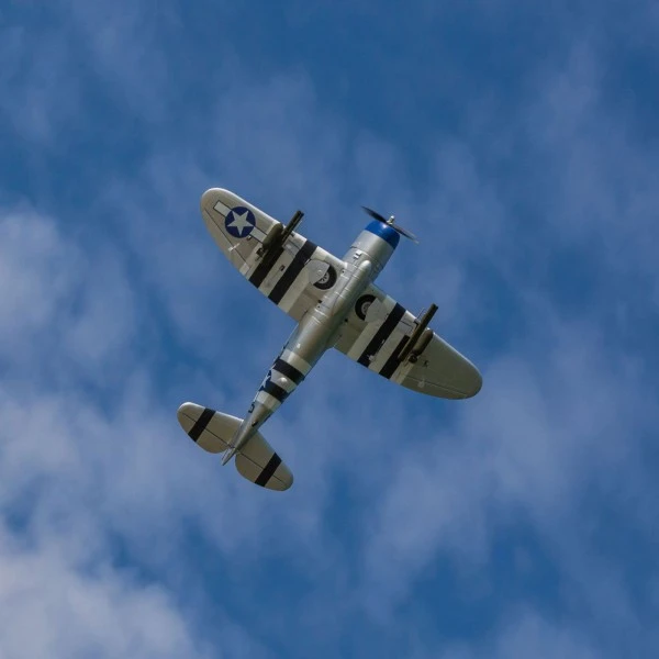 Vous mettrez du temps avant de trouver une autre rĂ©plique RC de ce warbird iconique qui ait autant d’allure que celui-ci. Le dĂ©cor parfaitement posĂ© est celui d’un P-47 qui volait pour le Squadron 510 du 405è groupe de chasse durant la seconde guerre mondiale. Le dĂ©cor est complĂ©tĂ© par les lignes de structure moulĂ©es, les mitrailleuses et le faux moteur en Ă©toile.