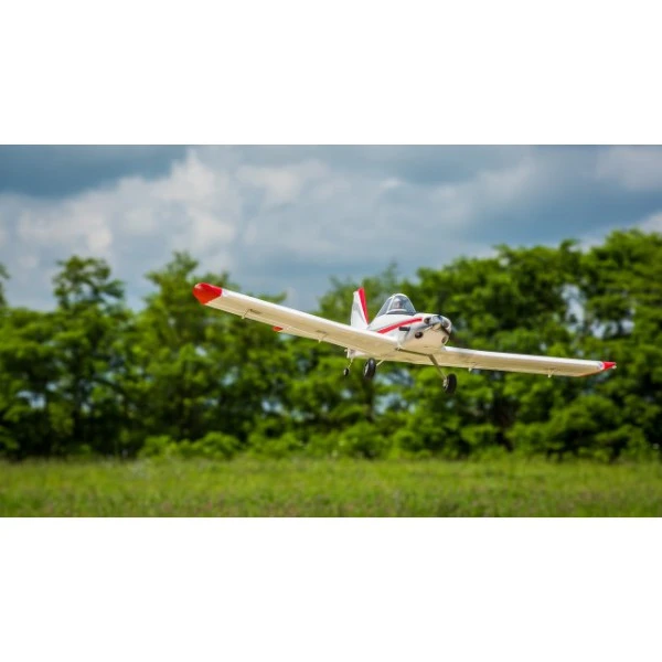 Comme tout avion agricole qui se respecte, la semi-maquette a Ă©tĂ© conçu avec plein de puissance sous le capot. En plus des commandes sur 4 voies avec la roulette de queue directrice, des feux de navigation ajoutent la touche de rĂ©alisme qui rendra très tentant de se lever de bonne heure pour aller voler Ă l’aube. Plus excitant encore, la structure translucide qui est truffĂ©e d’un système d’Ă©cflairage Ă LEDs contrĂ´lĂ©s par un bouton, et qui permet de voler dans le noir sans perdre l’avion de vue. Pour complĂ©ter le tout, la technologie AS3X® ajoute la stabilitĂ© qui fait un vrai plaisir de voler en rase-motte comme le font les avions d’Ă©pandage.