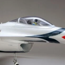 Le F-16 Thunderbirds 70mm EDF E-Flite est une rĂ©plique de l’icone pilotĂ©e par les Thunderbirds de l’USAF. Comme la vedette des meetings aĂ©riens grandeur nature, ce F-16 offre un domaine de vol incoyablement vaste, depuis les vols lents Ă haute incidence jusqu’Ă des possibilitĂ©es de hautes vitesse et d’Ă©volutions dans le plan vertical fantastiques. Au cĹ“ur se trouve une motorisation brushless compatible 6S et un contrĂ´leur 70 A associĂ©s Ă une turbine Ă 12 pales qui dĂ©livre en abondance vitesse, poussĂ©e, ainsi qu’un son proche de celui d’une vraie turbine. Les trains rentrants Ă©lectriques avec amortisseur permettent de dĂ©coller et d’atterrir sur unne grande variĂ©tĂ© de surfaces, y compris l’herbe, tout en conservant un comportement souple au sol et en offrant une vĂ©ritable expĂ©rience des jets. La cellule en EPO renforcĂ©e de matĂ©riaux composites est lĂ©gère mais robuste, et les servos digitaux Ă pignons mĂ©tal avec commandes montĂ©es sur rotules assurent un contrĂ´le prĂ©cis. Tout ceci se combine pour proposer une des plus faciles, mais aussi des plus performants modèles de F-16 jamais produits.