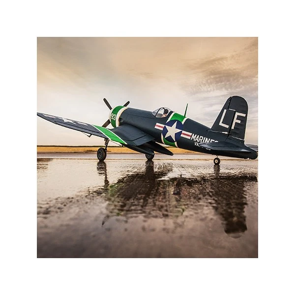Le F-4U-4 Corsair en 1,2 m d’envergure de E-flite® est un park-flyer complet qui vole aussi bien qu’il est beau. Une grande hĂ©lice quadripale, des volets fonctionnels en trois parties, un train rentrant Ă©lectrique pivotant Ă 90° et des lignes musclĂ©es ne sont que les points les plus visibles de la liste des particularitĂ©s. La construction en mousse Z-Foam™ garde un poids total faible et donne un niveau de durabilitĂ© Ă la cellule qui est idĂ©al pour voler au quotidien. Mais la particularitĂ© exclusive qui en fait le warbird que vous choisirez pour voler tous les jours, c’est la technologie AS3X® ? Ceci parce que le rĂ©cepteur compact Spektrum™ AR636A DSMX® installĂ© est dotĂ© du système AS3X, spĂ©cialement rĂ©glĂ© pour vous offrir des trajectoires au cordeau, et des sensations similaires Ă celles que vous auriez avec un modèle beaucoup plus grand et rĂ©glĂ© par un expert. Que vous soyez un pilote de niveau moyen ou très expĂ©rimentĂ©, ce Corsair vous assure que vous allez apprĂ©cier tout ce qu’un tel warbird apporte.