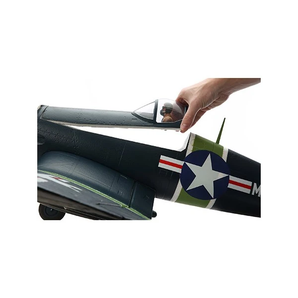 Le moteur en étoile de 18 cylindres monté sur les premiers Chance Vought Corsair affichait déjà quelques 2 000 CV. Les versions suivantes pouvaient développer 2 380 CV, permettant d’emporter plus d’armement. Mieux, ces 380 CV supplémentaires signifiaient qu’il était plus facile de faire face à l’ennemi et de rentrer à la maison. Avec le nouveau F4U-4 Corsair 1,2 m Bind-N-Fly® Basic E-flite®, vous retrouverez la sensation de puissance sur une reproduction du Corsair aux couleurs de l’escadre d’entraînement VMFT-20 de l’U.S. Marine Corps.