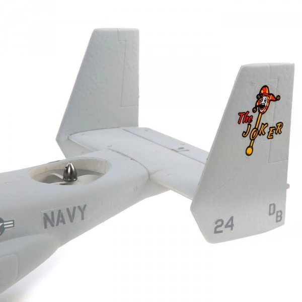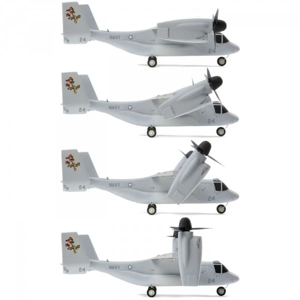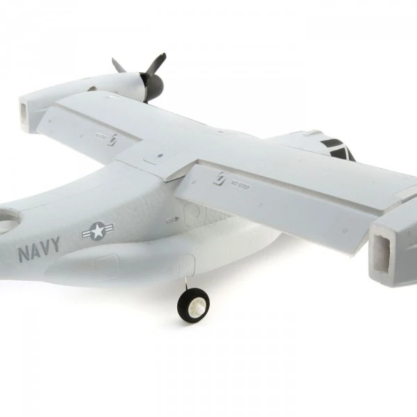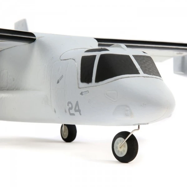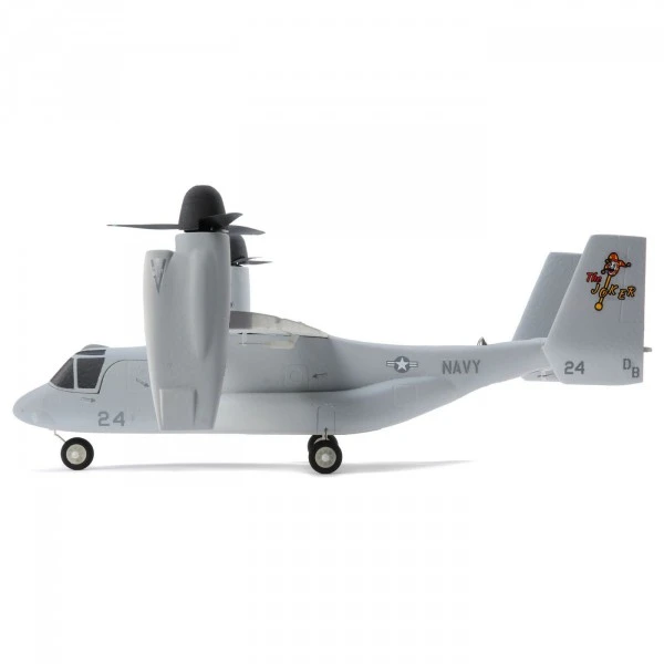 Mieux encore, vous pouvez mettre le V-22 en vol en un rien de temps ! La cellule arrive entièrement assemblĂ©e avec un contrĂ´leur de vol, des servos, des moteurs et des contrĂ´leurs installĂ©s en usine (plus un rĂ©cepteur sĂ©rie Spektrum ™ en version BNF Basic). Elle est Ă©galement finie en usine avec une peinture multicolore et la feuille de dĂ©calcomanies incluse vous permet de personnaliser la finition avec de multiples options de motifs militaires. La configuration de l’Ă©metteur très simple ne nĂ©cessite que l’attribution d’un commutateur pour la sĂ©lection du mode de vol. Vous n’avez plus ensuite qu’Ă installer une batterie LiPo 3S 11.1V 800mAh complètement chargĂ©e (vendue sĂ©parĂ©ment) pour voler. Vous avez Ă©galement le choix d’installer le train d’atterrissage tricycle afin de pouvoir taxier et effectuer des dĂ©collages et des atterrissages ‘en roulant’, ou vous pouvez le laisser lisse pour profiter du look « train rentré ».